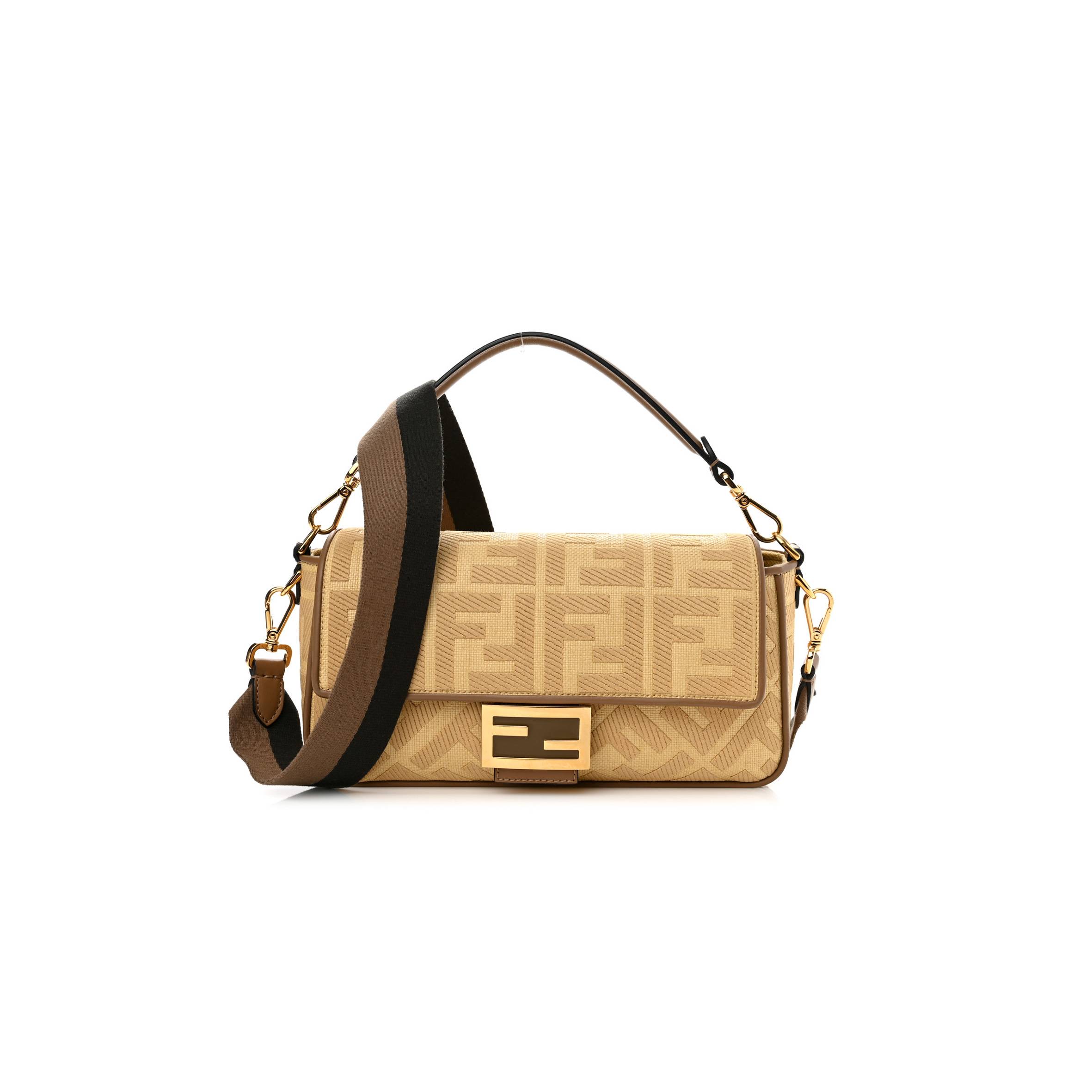 F**di raffia vitello king lucido ff embroidered baguette grano sand (28*15*6cm)