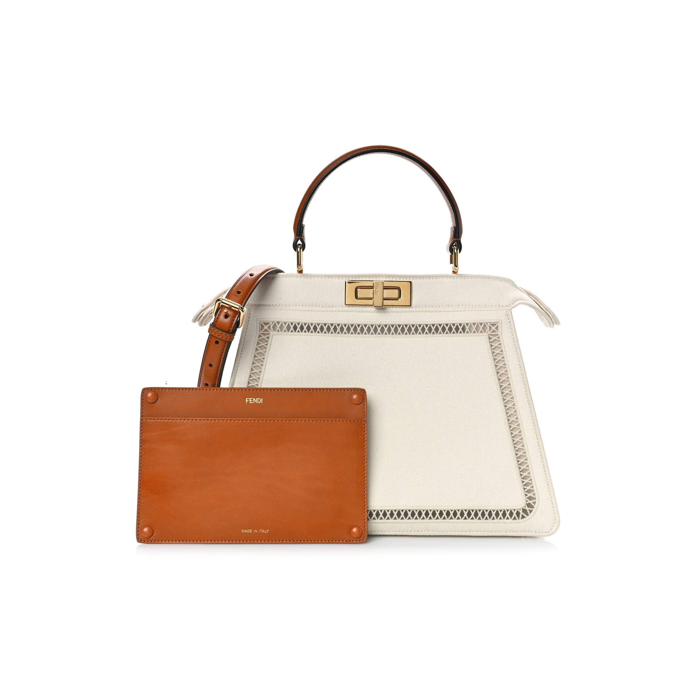 F**di fabric vitello ajour embroidered medium peekaboo i see u grezzo cuoio (33*25*11cm)